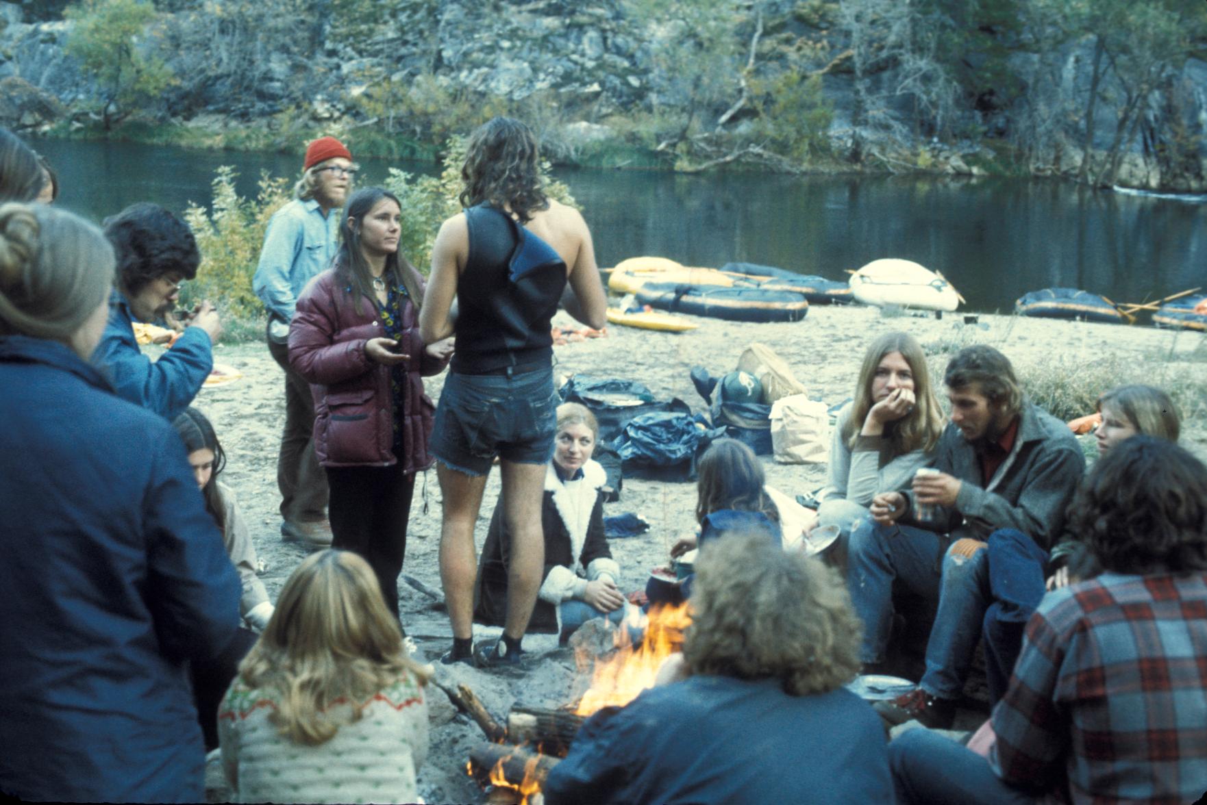 Dennis Vierra, the signature gathering coordinator who successful trained 100s of river-loving volunteers to gather signatures for Proposition 17 – left/dark hair/eating. Laurie Gerloff, & Don Alert (drinking) on right, Michael Harami back far right?.