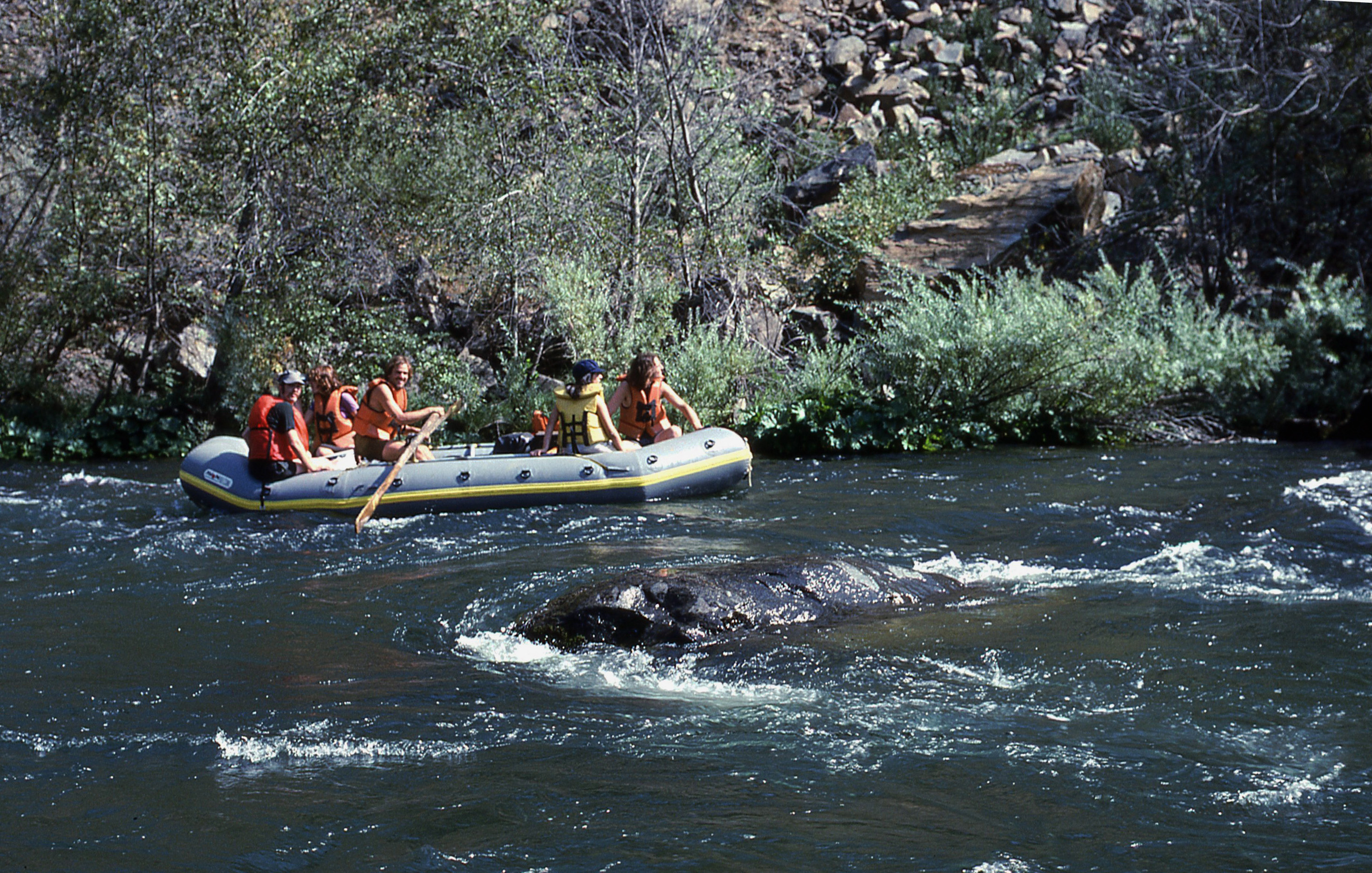 Guide: Alexander Gaguine, prominent FOR activist for saving the Stanislaus River. An FOR trip. Bob McBride, on left, an FOR organizer, far right, Michael Harami, local river organizer. Needs ID