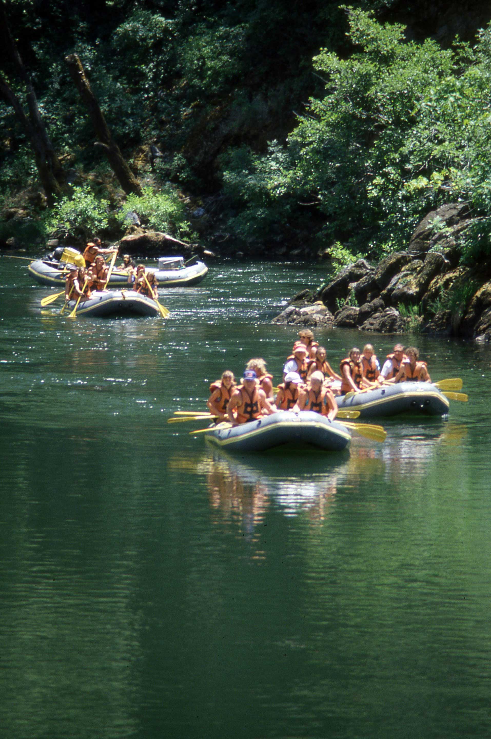 Beautiful pools and slow moving water just above the camp at Lower Chinese, right after Cop Rock Rapid. The eddy just to the right of the oar boat was notorious for sucking in newbie guides!